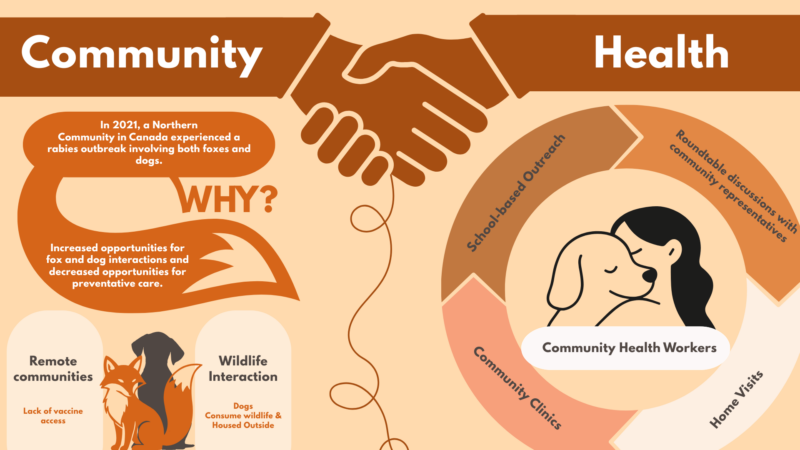 Rabies is endemic in the Arctic fox population of this region, and in 2021, Tuktoyaktuk experienced an outbreak involving both foxes and dogs that continues to shape community perceptions and response to this public health risk (4). To understand rabies in this context, it is important to consider the role of dogs in northern life. The relationship between Inuit communities and dogs is a longstanding partnership rooted in survival, culture, and companionship. In Tuktoyaktuk, dogs commonly serve as working animals used for sledding, hunting, and as early-warning systems for wildlife, such as polar bears, that may enter the community. Traditionally, dogs are housed outdoors and fed harvested “country food,” which includes fish, caribou, and other wildlife. These cultural and environmental factors influence dog management practices and patterns of exposure. In communities without consistent access to vaccination, spillover of rabies from wildlife into domestic dogs represents a significant zoonotic risk, positioning preventive veterinary care, particularly vaccination, as a critical public health intervention. In this context, improving access to preventive veterinary care requires approaches that extend beyond intermittent clinical services.